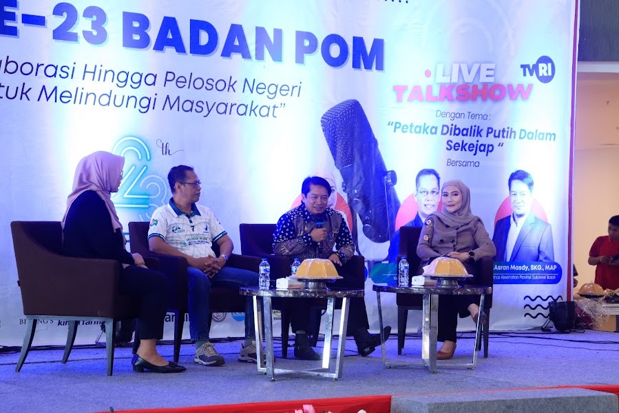 MAMUJU, REFERENSIMEDIA.COM — Kepala Dinas Kesehatan (Kadinkes) Sulbar drg. Asran Masdy, menjadi salah satu pembicara utama dalam Talkshow menyambut HUT-23 Badan Pengawas Obat dan Makanan (BPOM). Acara yang bertajuk “Petaka di Balik Putih dalam Sekejap” diselenggarakan oleh BPOM Mamuju.