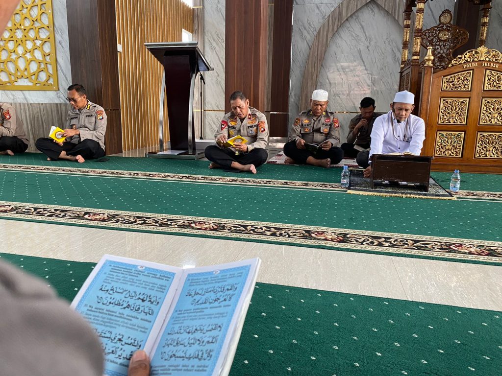 Nampak seluruh personel Polda Sulbar mengikuti seluruh rangkaian Binrohtal dengan penuh semangat dan kekhusyukan. Gemuru lantunan ayat-ayat al-Quran juga menambah kesejukan dalam kegiatan tersebut, Kamis, 8 Agustus 2024 di Masjid Jabal Rahmah Mapolda. (*)