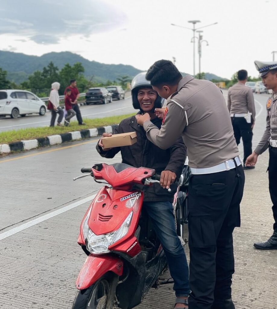 Pesan-pesan keselamatan berkendara disampaikan dengan santun dan humanis, menciptakan suasana yang hangat dan penuh kekeluargaan serta mengundang simpati masyarakat.