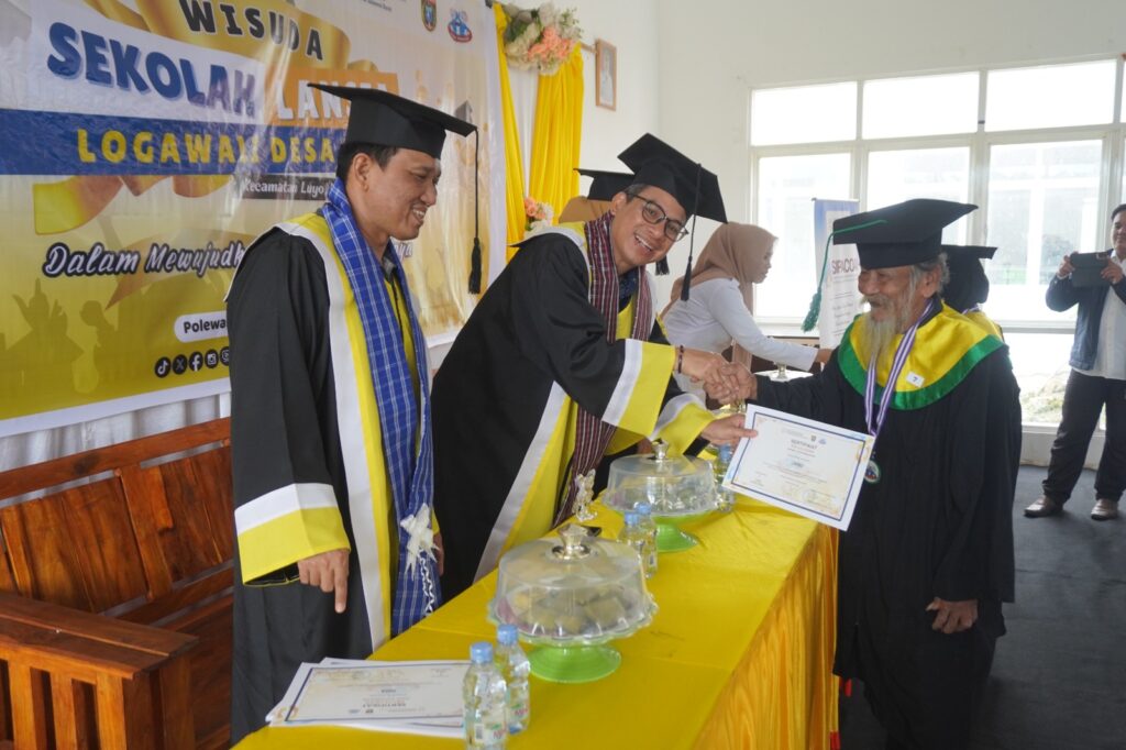 POLMAN, REFERENSIMEDIA.COM – Kepala Perwakilan BKKBN Provinsi Sulawesi Barat, Rezky Murwanto yang didampingi Kepala DP2KBP3A Kabupaten Polewali Mandar, drg. Hj. Sri Harni Patandianan dan Ketua Tim Kerja Ketahanan Keluarga, Walfaidin resmi melakukan Wisuda bagi dua puluh lansia dari Sekolah Lansia Logawali Desa Luyo di Kantor Camat Luyo, Polman pada Rabu, 22 Oktober 2025.