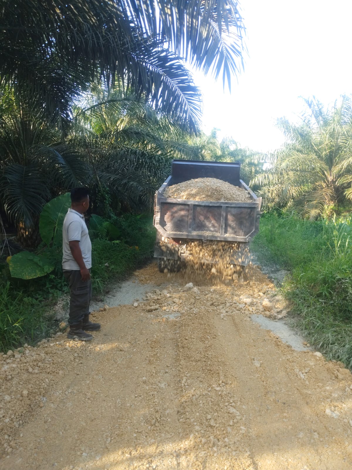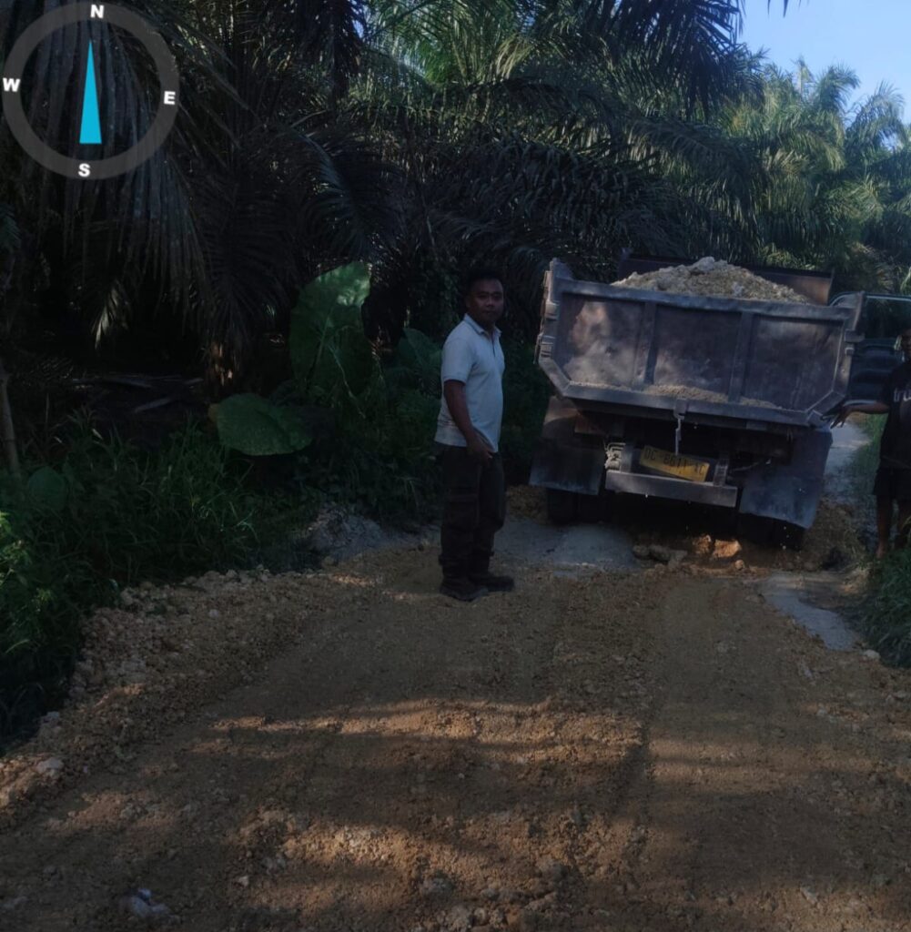 Penimbunan jalan ini menggunakan dana Corporate Social Responsibility (CSR) PT. Palma yang bertujuan untuk mempermudah akses jalan tani yang dilalui masyarakat sekitar.