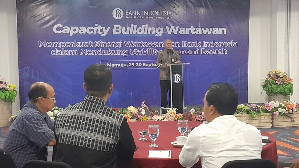 MAMUJU, REFERENSIMEDIA.COM — Perwakilan Bank Indonesia (BI) Provinsi Sulawesi Barat meggelar Capacity Building Wartawan di Hotel Matos Mamuju, Senin, 29 September 2025.